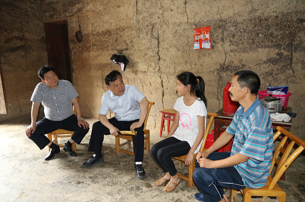 在龙舟坪镇郑家榜村、晒鼓坪村,袁卫东与35名省、市、县、乡人大代表分成7个小组,分别深入到28个贫困户家中,重点围绕精准扶贫精准脱贫落实情况开展调查走访。 “家里有几口人?主要收入来源靠什么?享受了哪些扶贫政策?你们的帮扶干部是谁?……”袁卫东来到邓守全、刘红波、李怀清等6个贫困户家中,与他们亲切地拉家常,详细了解他们的贫困原因、脱贫方式、谁在帮扶、现有扶贫政策措施落实情况及当前迫切需要解决的问题等。代表们边问、边看、边讨论,检查帮扶干部“绣花”功夫落实情况,寻找工作薄弱环节,现场研究帮扶措施。对走访发现的房屋搬迁、医疗救助、教育扶贫、产业扶持等问题,按照“分层负责,分级交办”的原则,现场研究分办,并督促县乡政府落实到位,按期回复人大代表。